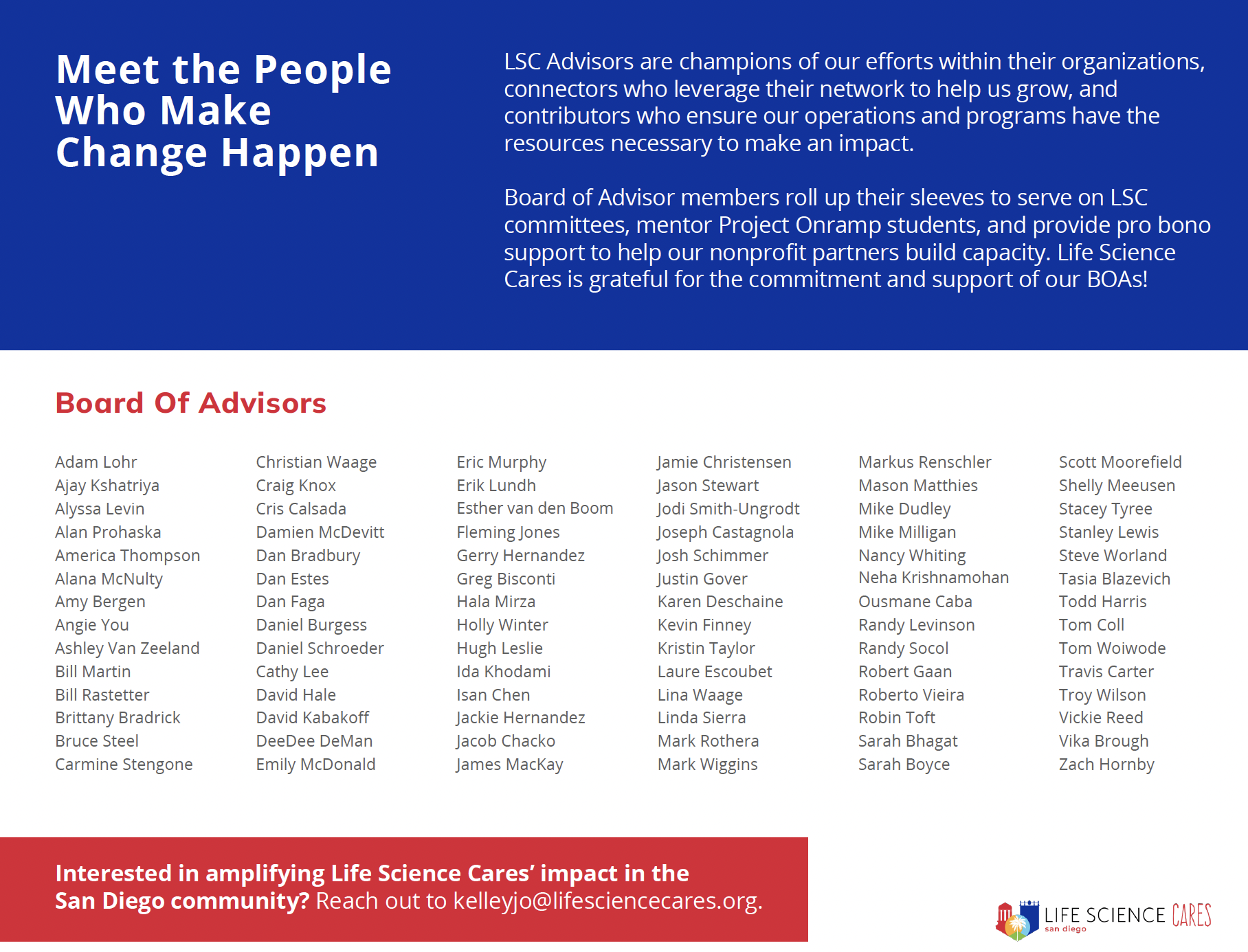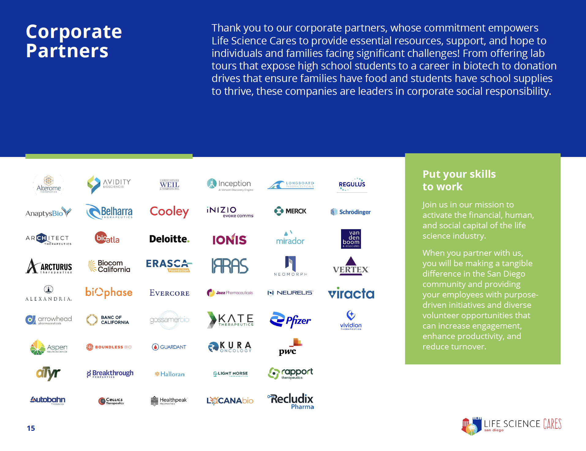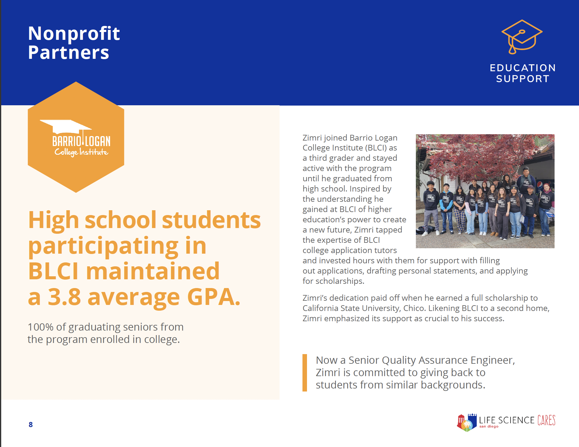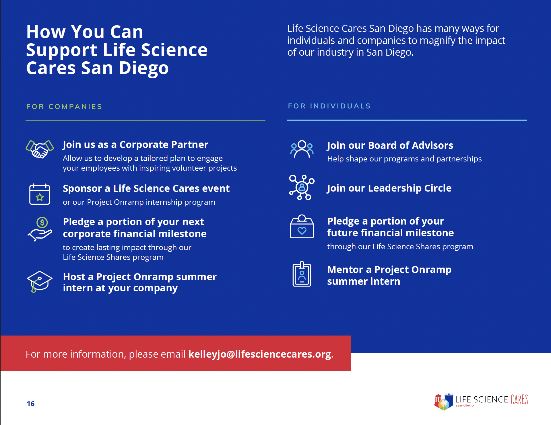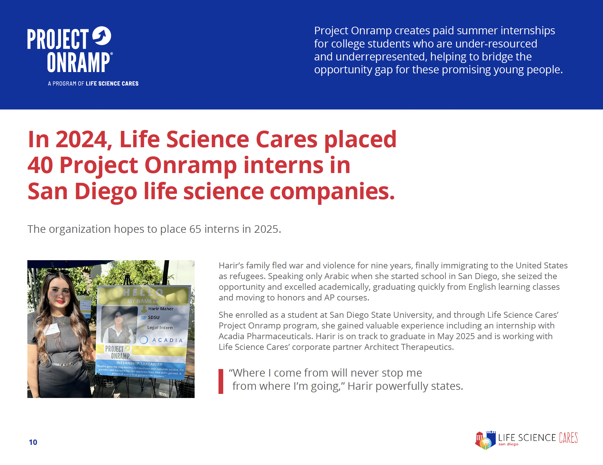 In 2024, the life science community came together to create meaningful change across San Diego. Our Impact Report highlights how your support helped advance access to basic needs, education, career pathways, and equitable healthcare — all in service of building a more just and thriving region.